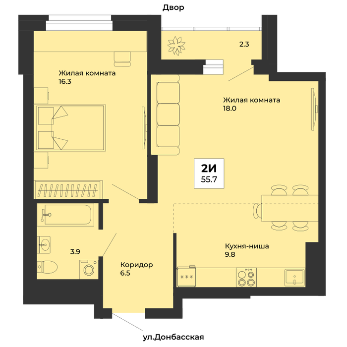 Екатеринбург, ул. Донбасская, 21 - фото квартиры 30 октября 2025 90 дн. 2 46.7 7/25 7 378 600