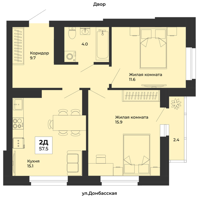 Екатеринбург, ул. Донбасская, 21 - фото квартиры 16 ноября 2025 90 дн. 1 42 6/25 6 636 000