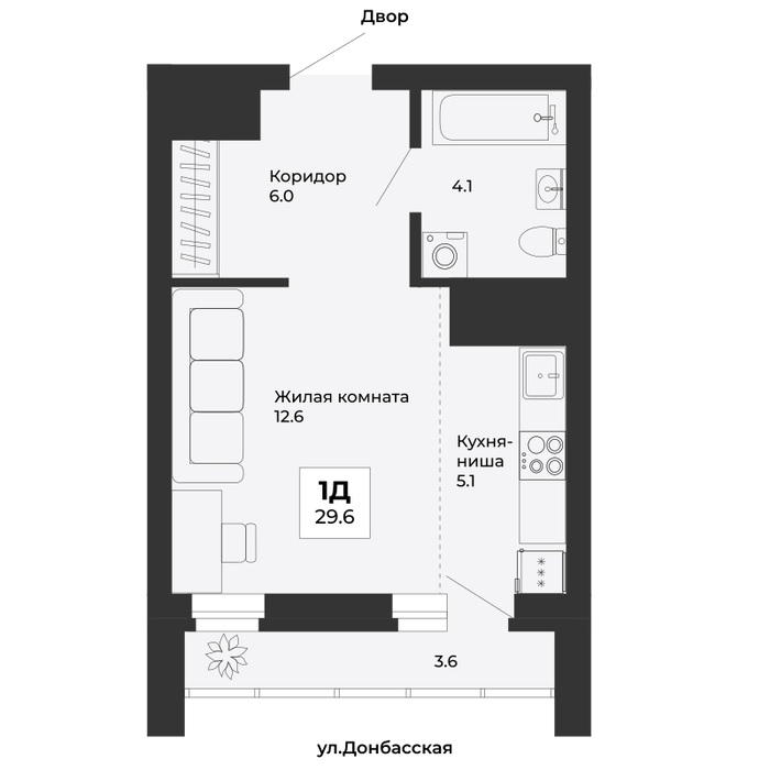 Екатеринбург, ул. Донбасская, 21 - фото квартиры 1 ноября 2025 90 дн. 1 29.8 9/25 4 887 200