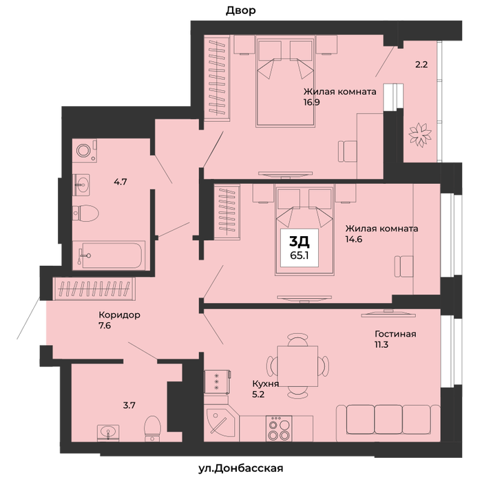 Екатеринбург, ул. Донбасская, 21 - фото квартиры 16 ноября 2025 90 дн. 1 42 6/25 6 636 000