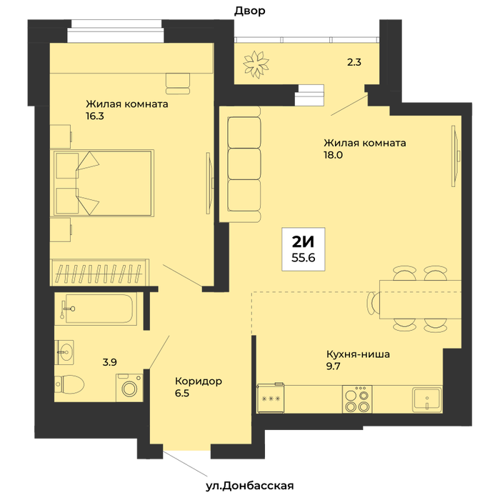 Екатеринбург, ул. Донбасская, 21 - фото квартиры 16 ноября 2025 90 дн. 1 42 6/25 6 636 000