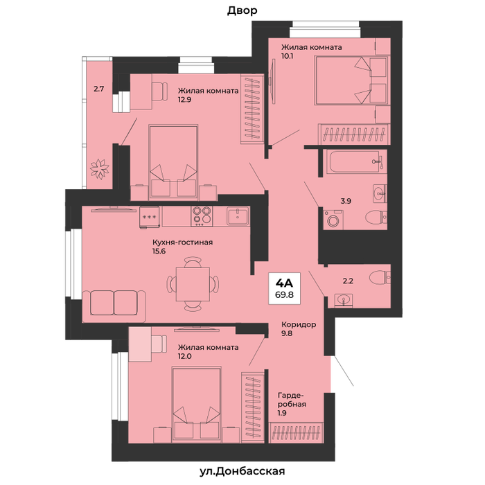 Екатеринбург, ул. Донбасская, 21 - фото квартиры 16 ноября 2025 90 дн. 1 42 6/25 6 636 000