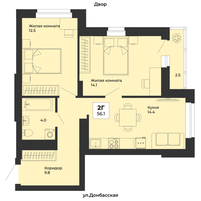 Екатеринбург, ул. Донбасская, 21 - фото квартиры 30 октября 2025 90 дн. 1 40.9 14/25 6 666 700