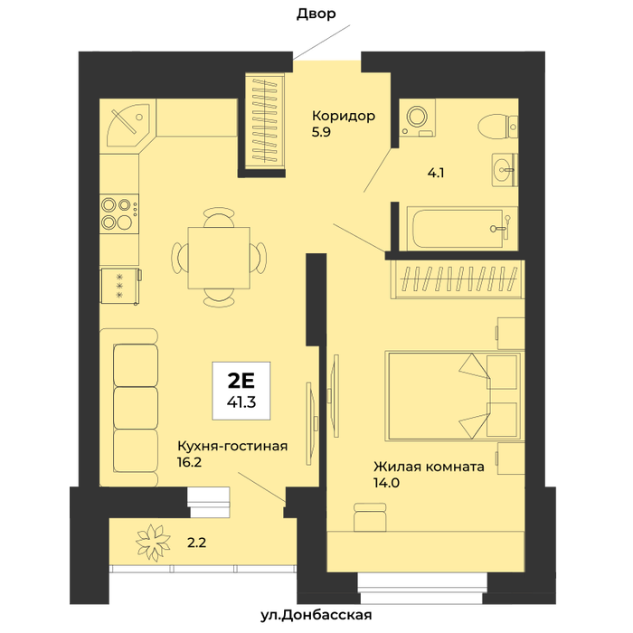 Екатеринбург, ул. Донбасская, 21 - фото квартиры 7 ноября 2025 90 дн. 1 41.3 14/25 6 608 000