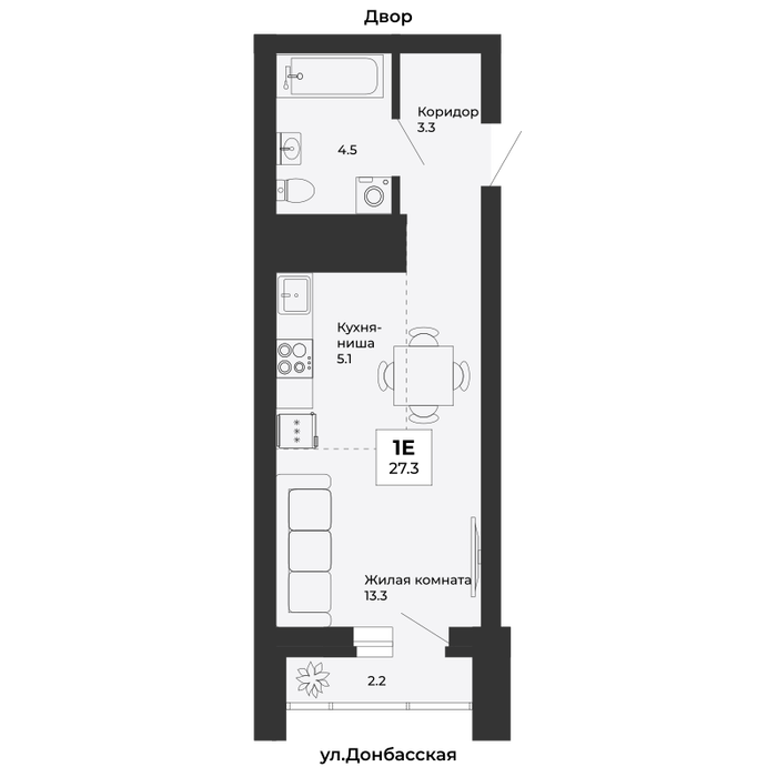 1-к квартира, Донбасская, 21