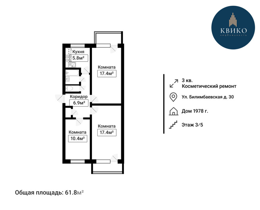 Предлагаем Вашему вниманию квартиру в микрорайоне Старая Сортировка.Плюсы расположения:✔ Благоустройство двора✔ Доступность общественного транспорта✔ Доступность магазиновКвартира:-планировка: кухня, 3 изолированные комнаты( 10,4м2.17,4м2,17,4м2), 2 балкона;- косметический ремонт;-стояки ,трубы ГВС,ХВС заменены, стены выровнены, пол-ламинат в комнатах, плитка-ванна и коридор, кухня-линолеум, стены-обои, потолок в коридоре и кухне не делали;- окна пластиковые. на разные стороны;- счётчики ГВС, ХВС(меняли 2024 и 2025г), электрический;- коммунальные платежи: лето-4000р,зима -8000р;- сейф дверь ;-если нужно ,оставим пианино; Дом:- дом 1978 г;- открытая территория двора, придомовая территория ухоженная зеленая;- наземный паркинг, всегда есть места ;- дом без лифта;- хорошая транспортная развязка;- в шаговой доступности: детские сады (Стрекоза,детский клуб,школа скорочтения и развития интеллекта, 197 м, Непоседы д.сад ,222м), 3 школы: №129-383м,№122-с углубленным изучением отдельных предметов-449м, №129-644м) .2 поликлиники и больницы: Центральная городская клиническая больница №3, терапевтическое отделение №3, 90 м, РЖД-Медицина стационар-682м, парк Семь Ключей, скверы, салоны красоты, аптеки,кафе,рестораны;-2 взрослых собственника, без обременений;Легко купить: наличные, ипотека.Поможем с реализацией Вашей недвижимости для приобретения данного объекта.Помощь в одобрении ипотеки по наилучшим ставкам от банков партнёров.Квико недвижимость гарантирует своим клиентам безопасность сделки, все сделки агентства застрахованы.