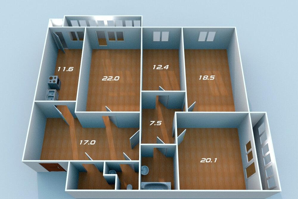 Апартаменты имеют комфортную эргономичную планировку: просторная кухня-гостиная 24,8 кв.м., три спальни от 11,8 до 14 кв.м., два санузла, гардеробная, тех.зона и в каждой комнате оборудованные места для хранения- встроенные шкафы-купе 4 шт.