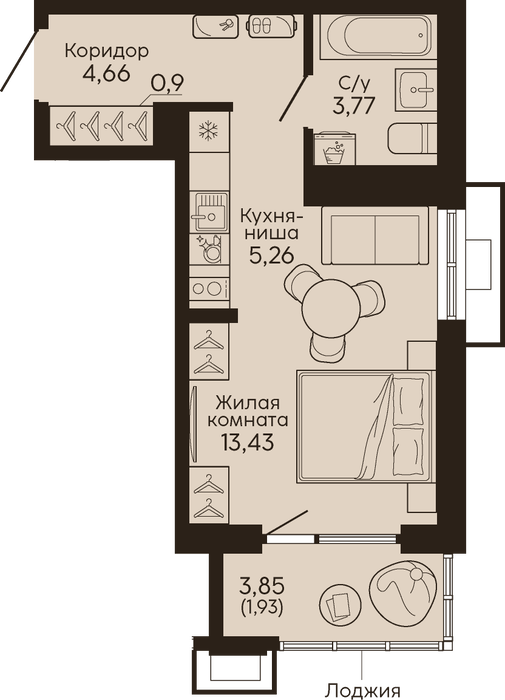 Жилая площадь:13.43 м2