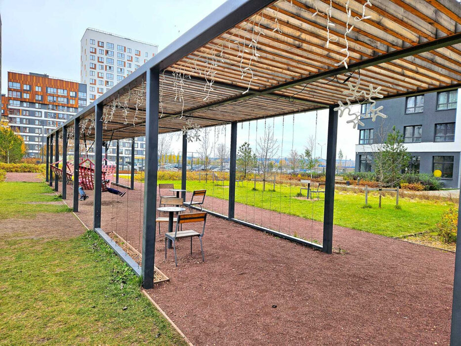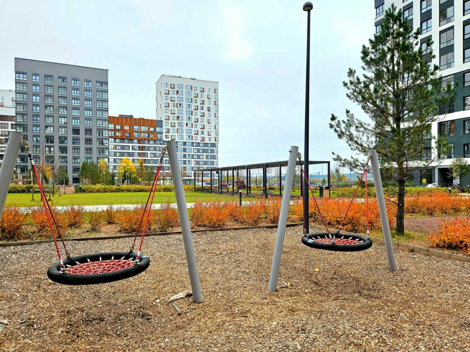В самом районе в шаговой доступности находятся парк, детский сад, школа, физкультурно-оздоровительный комплекс с 2 ледовыми аренами, бассейн. Построены 3 новых детских сада, ледовая арена Автомобилиста, Много продуктовых магазинов, аптек, кафе. Есть фитнес-залы, зоомагазины, ветеринарная клиника, школа развития для детей, строительные магазины. В шаговой доступности аутлет BRANDS STORIES. Напротив дома - парк с холмами и велодорожками, площадками для выгула и дрессировки собак, есть специальная оборудованная площадка для игры в футбол и зона воркаута. От дома до школы, садика и ледовой арены 5 мин пешком. Остановка рядом с домом, теплый остановочный комплекс.