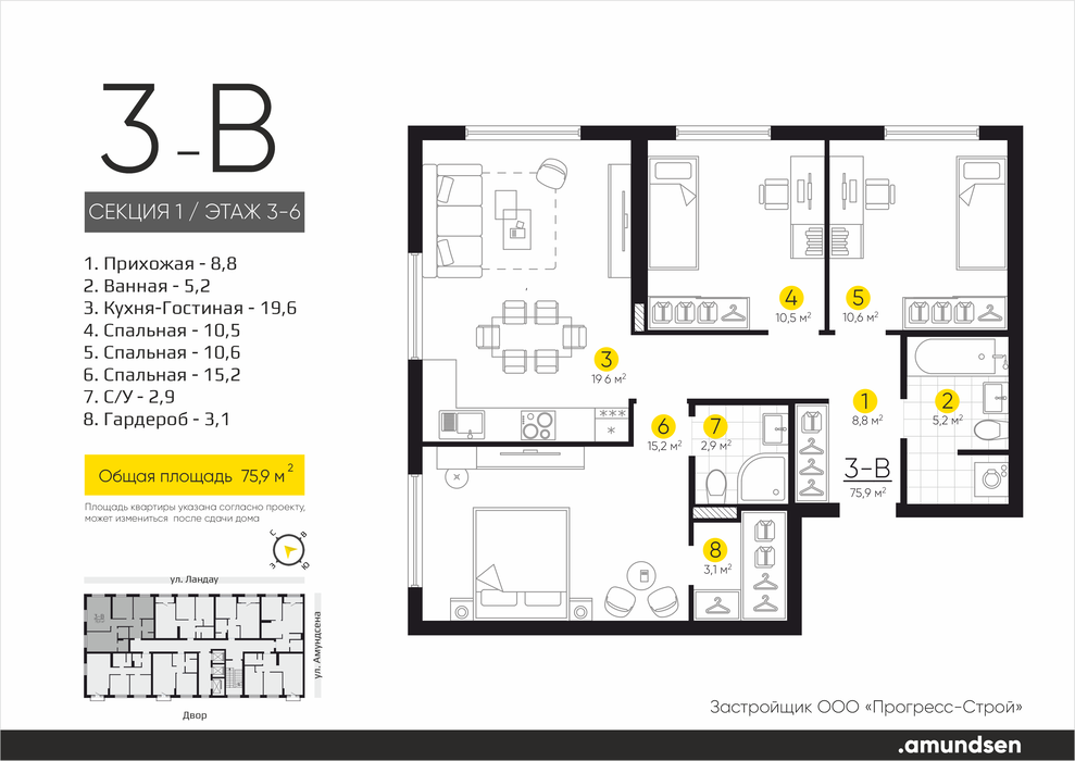 ПРЕИМУЩЕСТВА:- Удобная локация: расположен в северной части Екатеринбурга, в районе с развитой инфраструктурой, в пешей доступности несколько крупных лесопарков- Жилой комплекс состоит из двух домов, объединенных центральным лобби- Огромный двор-сад с детскими и спортивными площадками- Закрытая территория и круглосуточная система видеонаблюденияТРАНСПОРТНАЯ ДОСТУПНОСТЬ:- 5 минут ходьбы от ТЦ Veer Mall, 20 минут до центра на автомобиле, 30 минут на автобусе и метро- выезд на ЕКАД находится в пределах 1,6 км, на машине 7-10 минут.- до остановки общественного транспорта «Радиостанция» жильцы смогут дойти за пару минут- ближайшая к ЖК станция метро — «Проспект Космонавтов» расположена в 3,2 км, пешком можно добраться за 20-30 минут, на автобусе — в течение 10 минут, на автомобиле или такси — 5 минут.ОТДЕЛКА:Отделка выполнена "под ключ": обои под покраску, ламинат 32 класса, керамическая плитка в "мокрой" зоне прихожей и ванной комнате. Будет установлена акриловая ванная и удобная раковина с тумбой и смесителем. Межкомнатные двери с фурнитурой, натяжной потолок.Во всех квартирах установлены двухкамерные стеклопакеты с пятикамерными профилями. Для безопасности предусмотрены детские замки. В домах спроектирована горизонтальная двухтрубная разводка, что позволяет регулировать каждый радиатор в квартире по отдельности. Квартиры оборудованы умными счетчиками, которые самостоятельно передают показания в ресурсоснабжающие компании.У нового ЖК будет собственная открытая парковка на 230 машиномест, подземный паркинг на 76 машиномест.Срок сдачи дома - 3 квартал 2025 года.