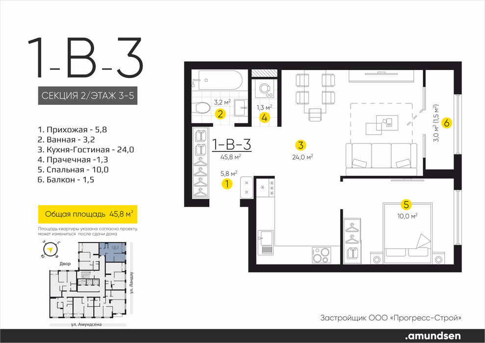 Екатеринбург, ул. Ландау, 3, ЖК «Amundsen» (Амундсен) (Ландау, 3) - фото квартиры 26 апреля 2025 90 дн. 1 33 7/25 5 500 000