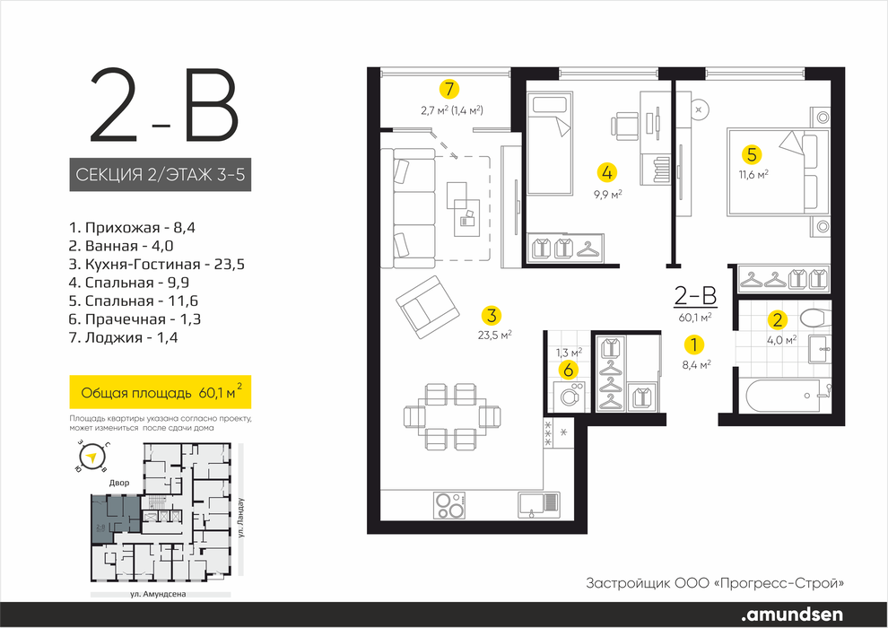 Екатеринбург, ул. Ландау, 3, ЖК «Amundsen» (Амундсен) (Ландау, 3) - фото квартиры 27 декабря 2024 90 дн. 2 62 6/24 9 500 000