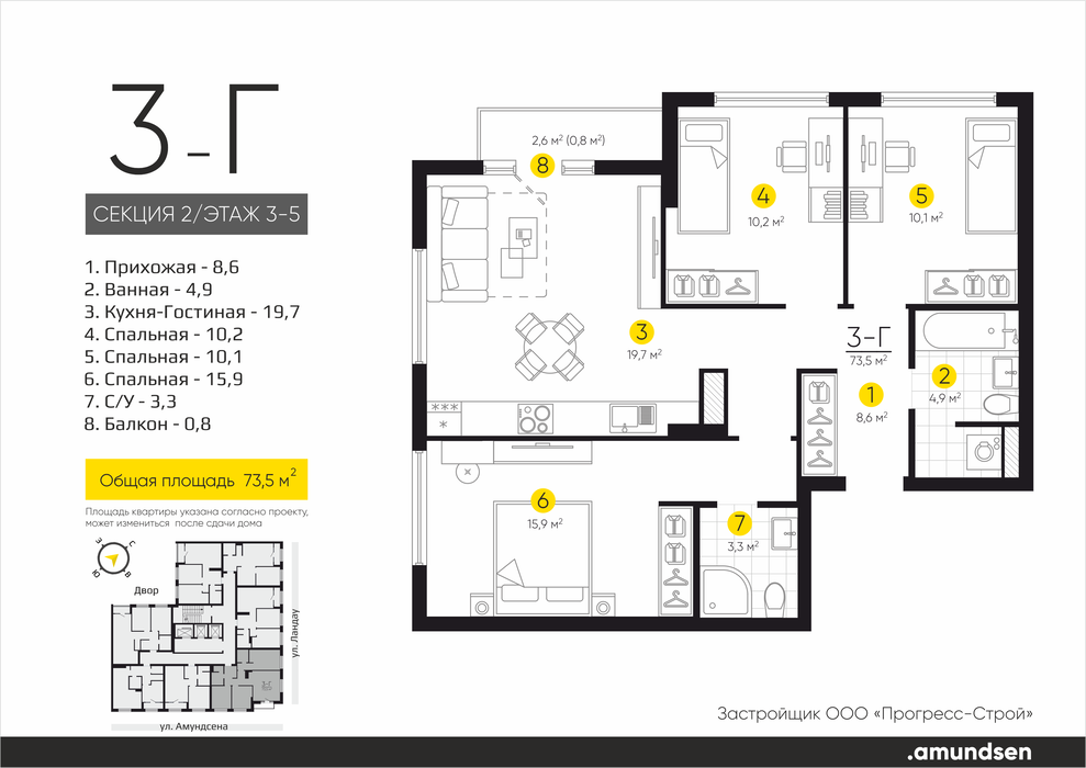 Екатеринбург, ул. Ландау, 3, ЖК «Amundsen» (Амундсен) (Ландау, 3) - фото квартиры 26 апреля 2025 90 дн. 1 33 7/25 5 500 000