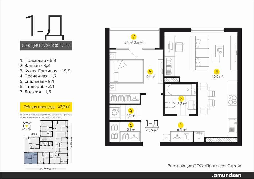 Екатеринбург, ул. Ландау, 3, ЖК «Amundsen» (Амундсен) (Ландау, 3) - фото квартиры 26 апреля 2025 90 дн. 1 33 7/25 5 500 000