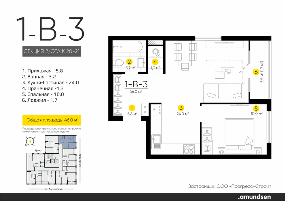 Екатеринбург, ул. Ландау, 3, ЖК «Amundsen» (Амундсен) (Ландау, 3) - фото квартиры 26 апреля 2025 90 дн. 1 33 7/25 5 500 000