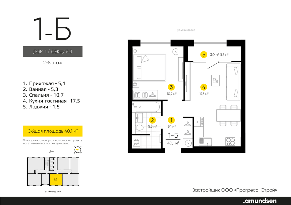 Общая площадь:40.1 м2