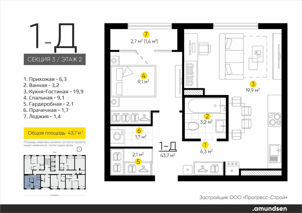 Екатеринбург, ул. Ландау, 3, ЖК «Amundsen» (Амундсен) (Ландау, 3) - фото квартиры 26 апреля 2025 90 дн. 1 33 7/25 5 500 000