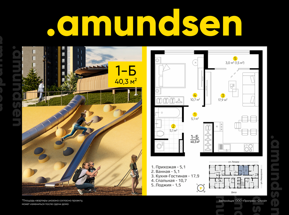 Екатеринбург, ул. Ландау, 3, ЖК «Amundsen» (Амундсен) (Ландау, 3) - фото квартиры 26 апреля 2025 90 дн. 1 33 7/25 5 500 000