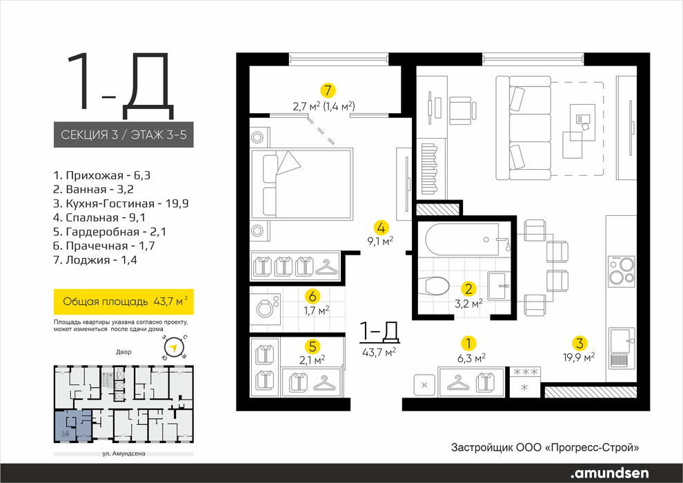 Екатеринбург, ул. Ландау, 3, ЖК «Amundsen» (Амундсен) (Ландау, 3) - фото квартиры 26 апреля 2025 90 дн. 1 33 7/25 5 500 000
