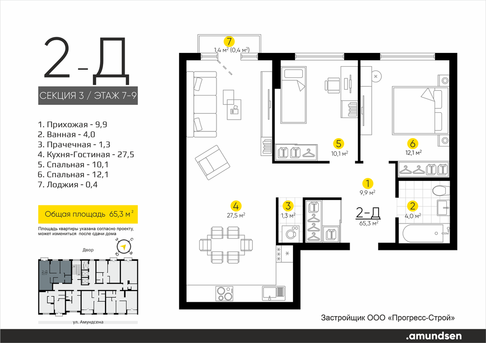 Екатеринбург, ул. Ландау, 3, ЖК «Amundsen» (Амундсен) (Ландау, 3) - фото квартиры 26 апреля 2025 90 дн. 1 33 7/25 5 500 000
