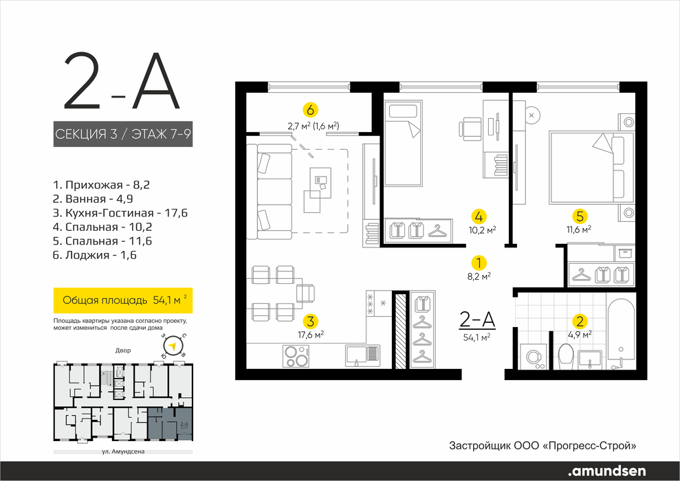 Екатеринбург, ул. Ландау, 3, ЖК «Amundsen» (Амундсен) (Ландау, 3) - фото квартиры 26 апреля 2025 90 дн. 1 33 7/25 5 500 000