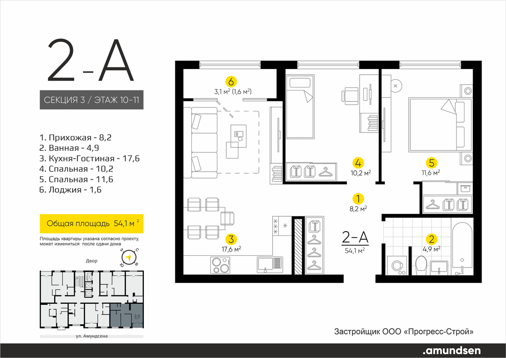 Екатеринбург, ул. Ландау, 1, ЖК «Amundsen» (Амундсен) (Дом 1) (Академический) - фото квартиры 10 января 2024 90 дн. 2 55 9/18 7 750 000