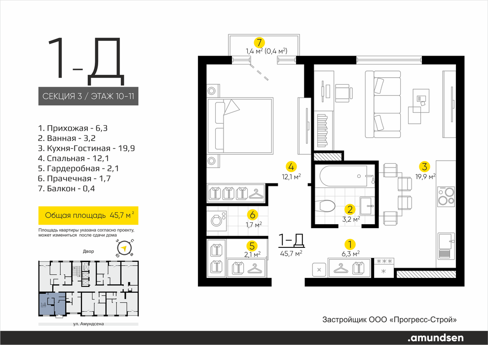 Екатеринбург, ул. Ландау, 3, ЖК «Amundsen» (Амундсен) (Ландау, 3) - фото квартиры 26 апреля 2025 90 дн. 1 33 7/25 5 500 000