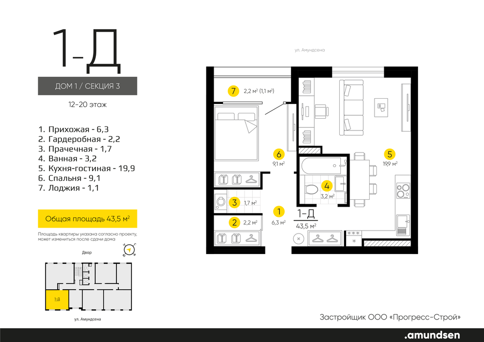 Общая площадь:43.51 м2