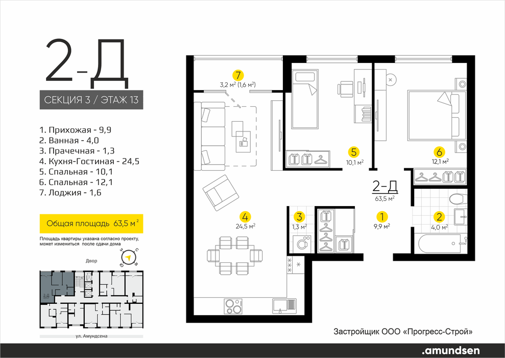 Екатеринбург, ул. Ландау, 3, ЖК «Amundsen» (Амундсен) (Ландау, 3) - фото квартиры 27 декабря 2024 90 дн. 2 62 6/24 9 500 000