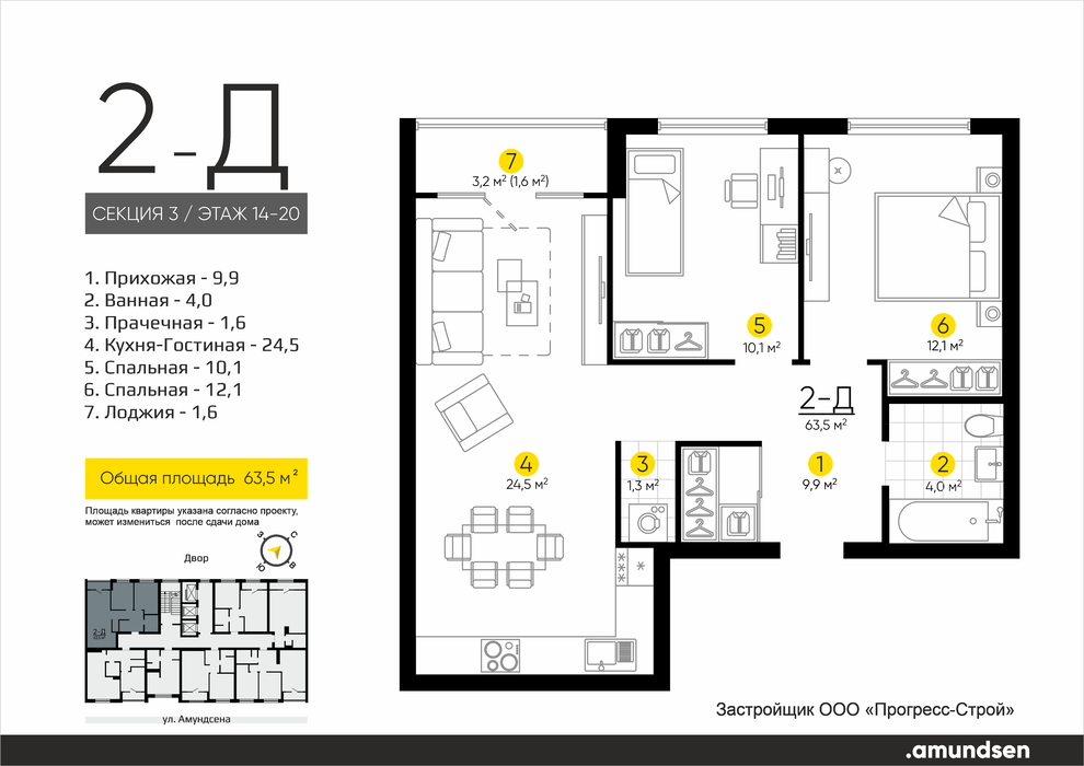 Екатеринбург, ул. Ландау, 3, ЖК «Amundsen» (Амундсен) (Ландау, 3) - фото квартиры 27 декабря 2024 90 дн. 2 62 6/24 9 500 000