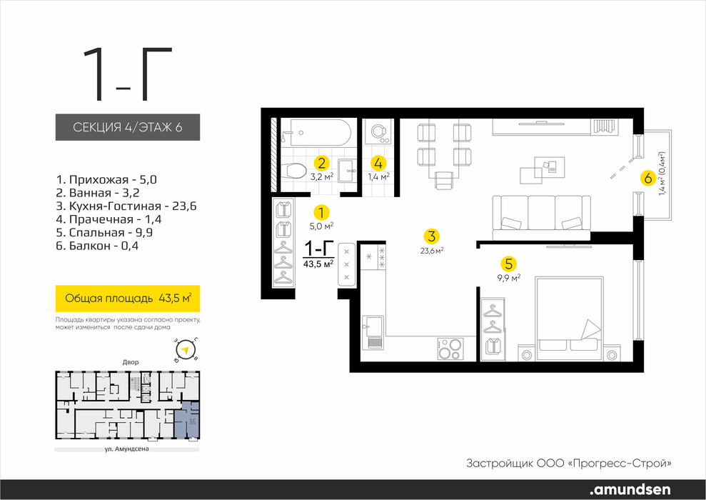 Екатеринбург, ул. Ландау, 3, ЖК «Amundsen» (Амундсен) (Ландау, 3) - фото квартиры 26 апреля 2025 90 дн. 1 33 7/25 5 500 000