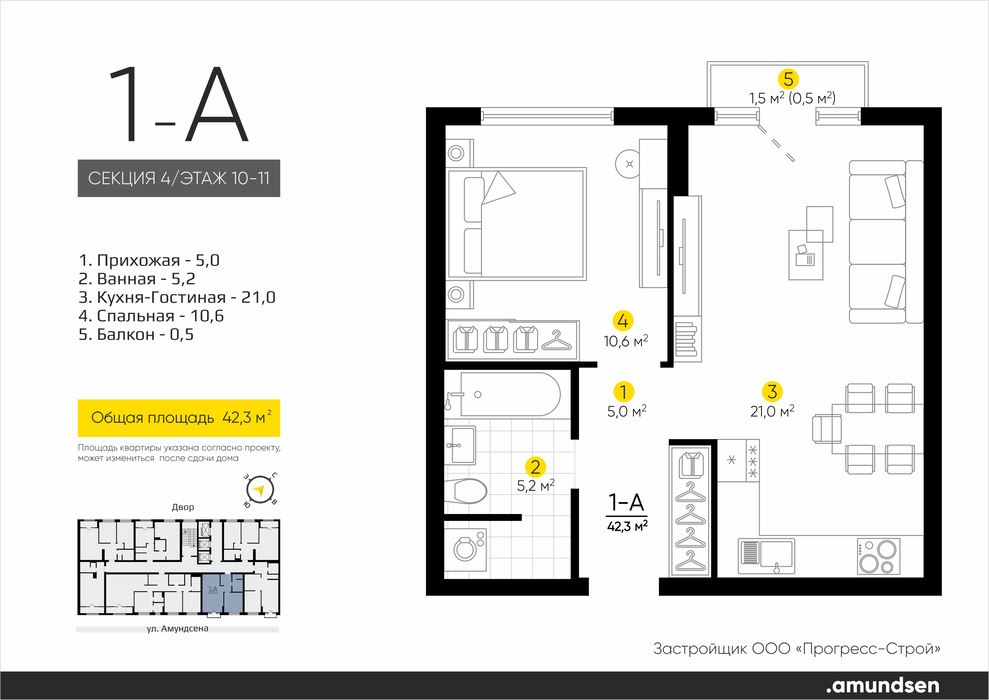 Екатеринбург, ул. Ландау, 3, ЖК «Amundsen» (Амундсен) (Ландау, 3) - фото квартиры 26 апреля 2025 90 дн. 1 33 7/25 5 500 000