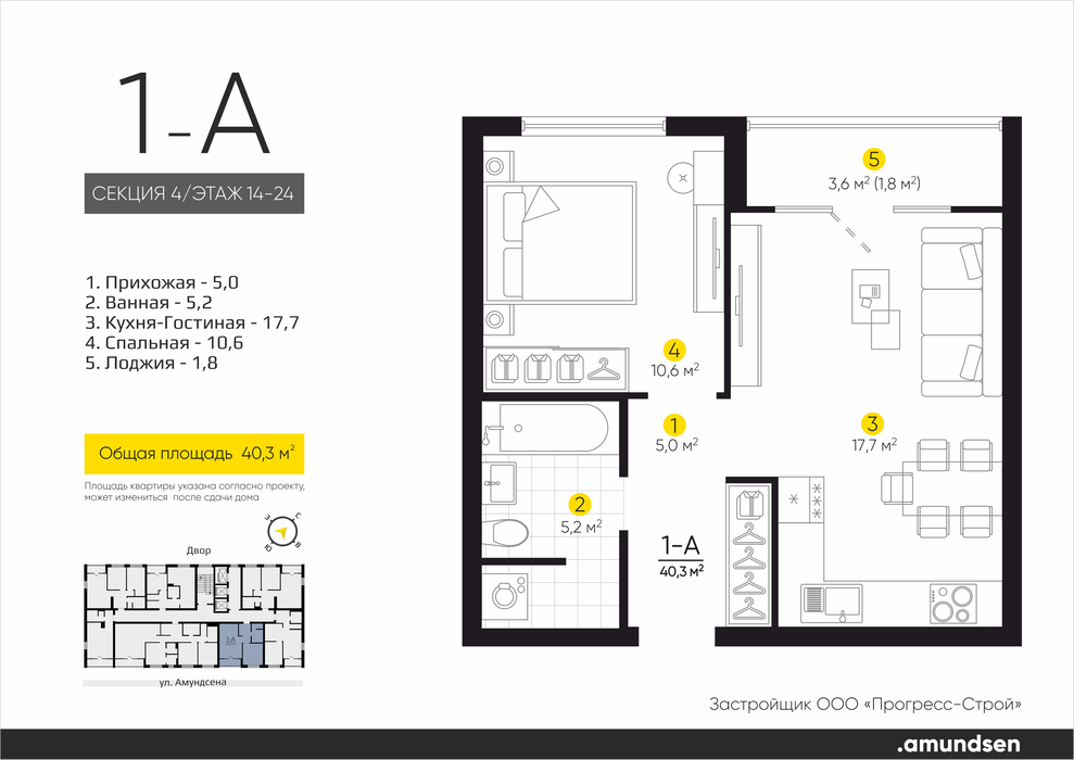 Екатеринбург, ул. Ландау, 3, ЖК «Amundsen» (Амундсен) (Ландау, 3) - фото квартиры 26 апреля 2025 90 дн. 1 33 7/25 5 500 000