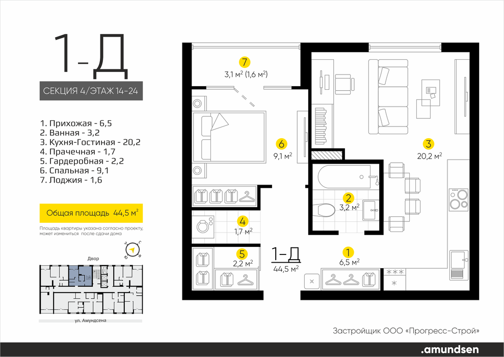 Екатеринбург, ул. Ландау, 3, ЖК «Amundsen» (Амундсен) (Ландау, 3) - фото квартиры 26 апреля 2025 90 дн. 1 33 7/25 5 500 000