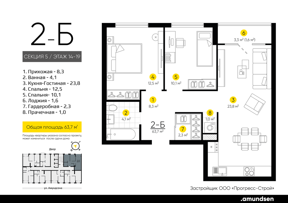 Екатеринбург, ул. Ландау, 3, ЖК «Amundsen» (Амундсен) (Ландау, 3) - фото квартиры 26 апреля 2025 90 дн. 1 33 7/25 5 500 000