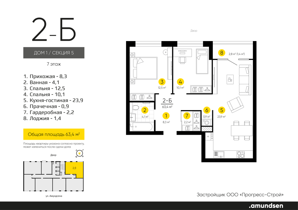 • 2-к квартира, Амундсена, 2, Дом "‎Милый дом" — 1 кв. 2026 г.