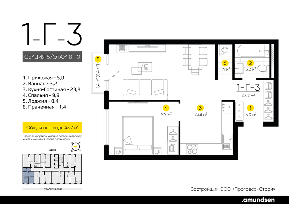 Екатеринбург, ул. Ландау, 3, ЖК «Amundsen» (Амундсен) (Ландау, 3) - фото квартиры 26 апреля 2025 90 дн. 1 33 7/25 5 500 000