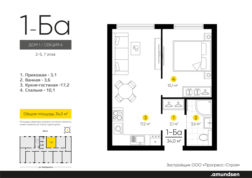 Общая площадь:34.02 м2