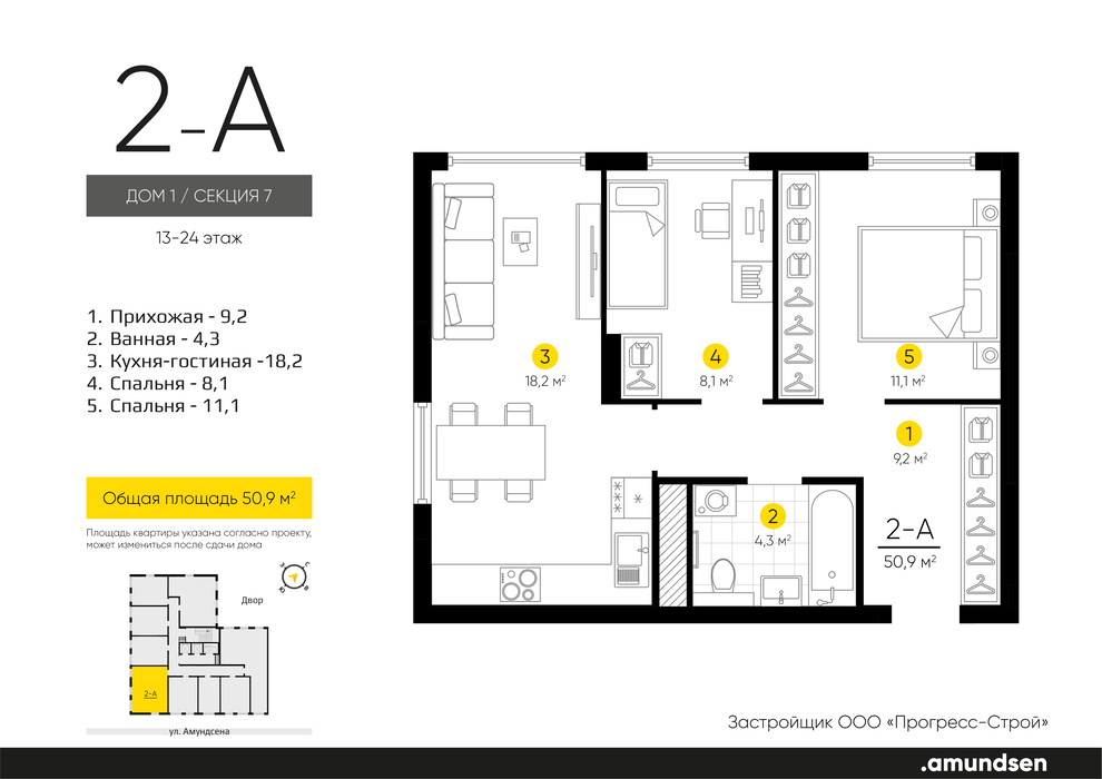 Екатеринбург, ул. Ландау, 3, ЖК «Amundsen» (Амундсен) (Ландау, 3) - фото квартиры 26 апреля 2025 90 дн. 1 33 7/25 5 500 000