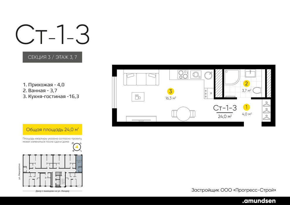 Екатеринбург, ул. Ландау, 3, ЖК «Amundsen» (Амундсен) (Ландау, 3) - фото квартиры 26 апреля 2025 90 дн. 1 33 7/25 5 500 000