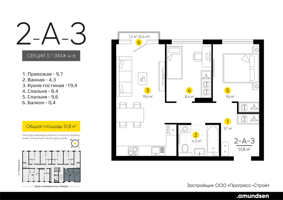 Общая площадь:51.82 м2