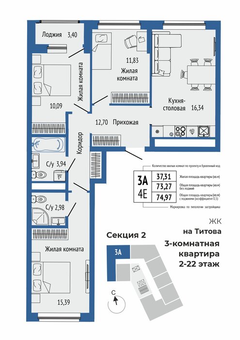 Продажа квартиры: Екатеринбург, ул. Екатеринбург, Вторчермет, Свердловская область, ЖК Орбита на Титова (Дом 1 (Секция 1-2)) (Вторчермет)