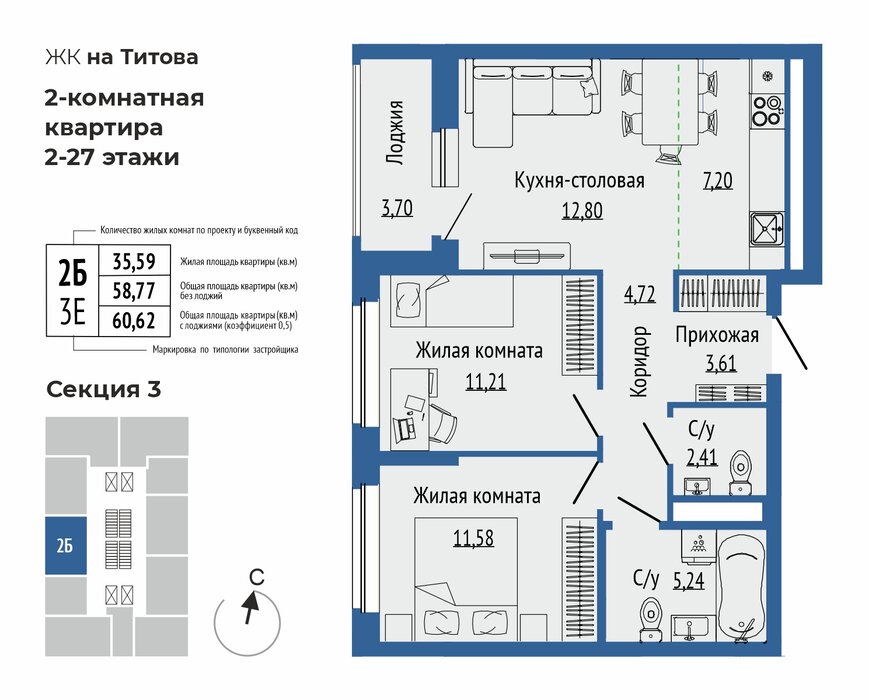 Продажа квартиры: Екатеринбург, ул. Екатеринбург, Вторчермет, Свердловская область, ЖК Орбита на Титова (Дом 2 (секция 3)) (Вторчермет)
