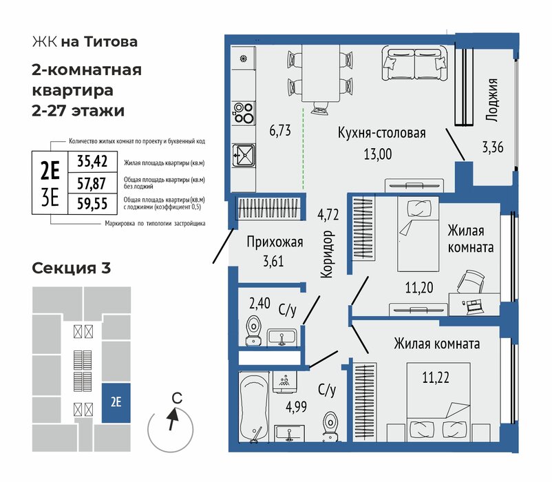 Продажа квартиры: Екатеринбург, ул. Екатеринбург, Вторчермет, Свердловская область, ЖК Орбита на Титова (Дом 2 (секция 3)) (Вторчермет)