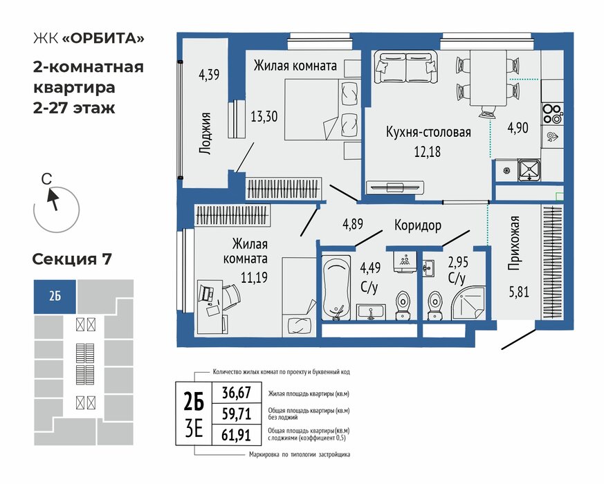 Продажа квартиры: Екатеринбург, ул. Екатеринбург, Вторчермет, Свердловская область, ЖК Орбита на Титова (Дом 2 (секция 3)) (Вторчермет)