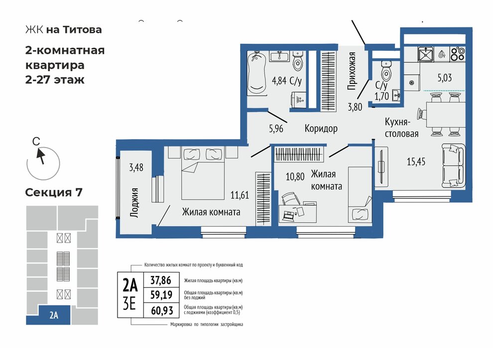 Продажа квартиры: Екатеринбург, ул. Екатеринбург, Вторчермет, Свердловская область, ЖК Орбита на Титова (Дом 2 (секция 3)) (Вторчермет)