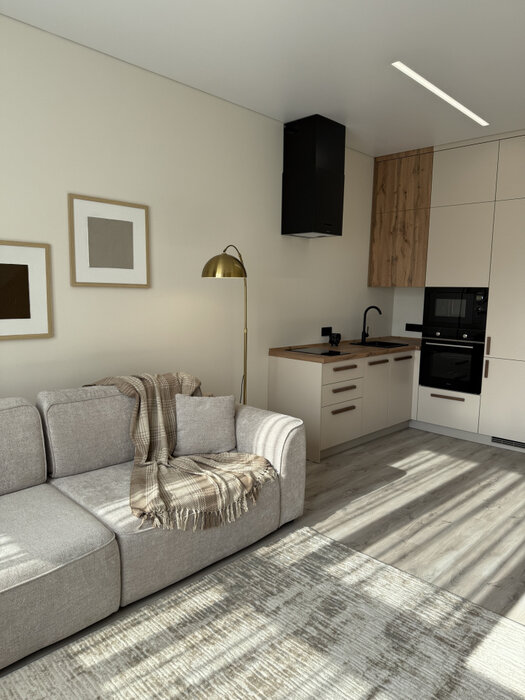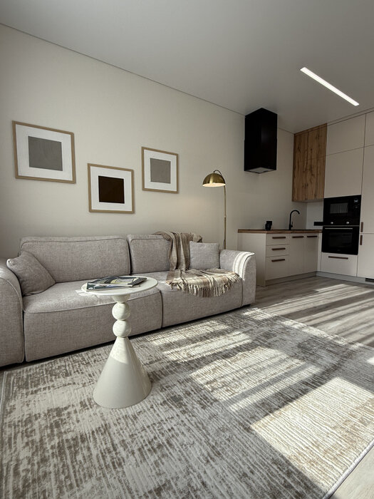 Площадь квартиры 31,6м2. С качественным ремонтом и современной мебелью (индивидуальный заказ) и техникой, элементы декора по дизайн-проекту.Высокие потолки (2,91м).Умный дом, доочистка воды и воздуха.