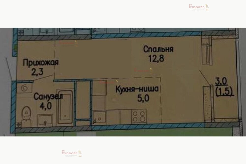 Объект № 192230. Продается студия 19,2 м² в экологичном ЖК «Светлый». 15 этаж, панорамный вид с балкона на реку и лес.
