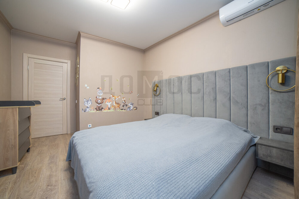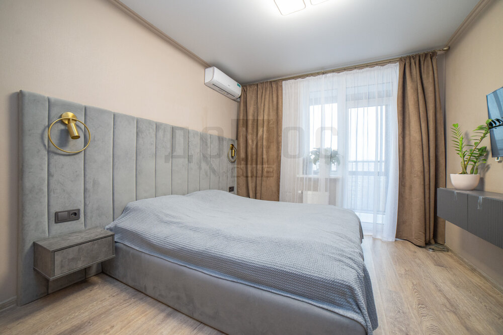 Спальное пространство: гипсовая рельефная стена со светильниками (Германия), кровать с мягким изголовьем из эко кожи, ортопедический матрас Memory Foam, шторы блек аут - все продумано для удобного безмятежного отдыха.