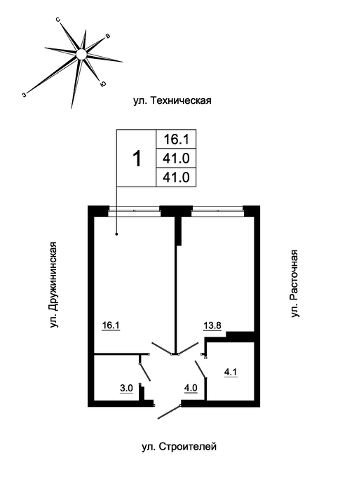 Общая площадь:41 м2
